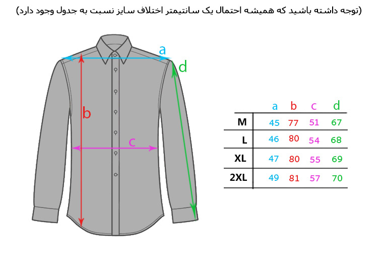 توجه داشته باشید که این مدل هم مثل پیراهن burberry باید با آب سرد شسته بشه و گرنه امکان آبرفت پارچه وجود داره. برای اطمینان از خریدتون، قبل از ثبت سفارش به جدول سایز توجه کنید.