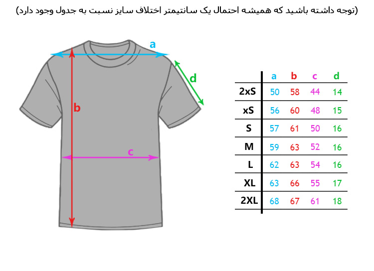 داشتن سایزبندی انتخاب رو برای شما عزیزان راحتتر کرده اما مثل همیشه ازتون درخواست داریم حتما قبل از خرید به جدول سایز دقت داشته باشید.