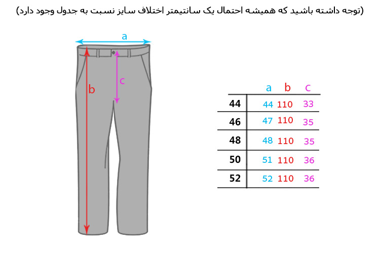 داشتن 3 رنگ متفاوت با سایزبندی کامل از دیگر ویژگیهای شلوار هاست که موجب امکان انتخاب بیشتر میشه. مثل همیشه از کاربرای عزیز خواهش میکنیم قبل از خرید حتما به جدول اندازهها دقت کنند.