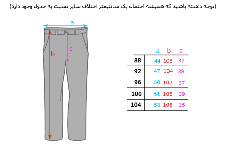 دوستان این شلوارها قوارهدار هستند و ما مثل همیشه از شما درخواست داریم برای انتخاب دقیقتر از جدول سایزبندی کمک بگیرید.