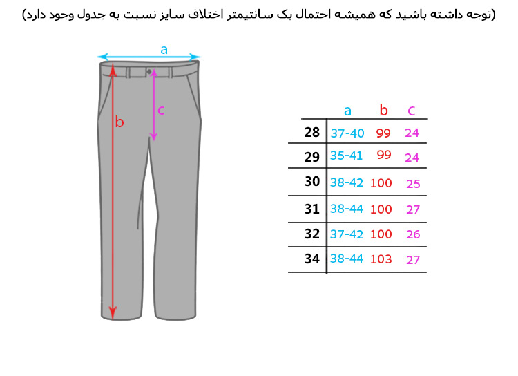 سلام من در مورد جدول سایز سوال پرسیدم. ممکنه جواب بدید، لطفاً.سایز 31 و 34 دقيقا مشابهن فقط 34 سه سانتیمتر بزرگتره؟